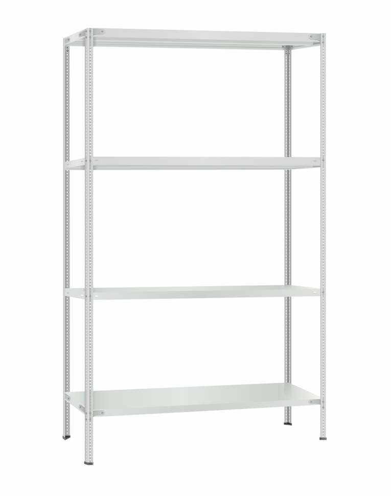 Полки МС Титан изготовлены из высокопрочной стали, покрыта полимерным порошковым покрытием светло серого цвета RAL 7035 типа шагрень - Ребро жесткости, расположенное вдоль длинной стороны полки имеет два загиба с размерами 38*17 мм.