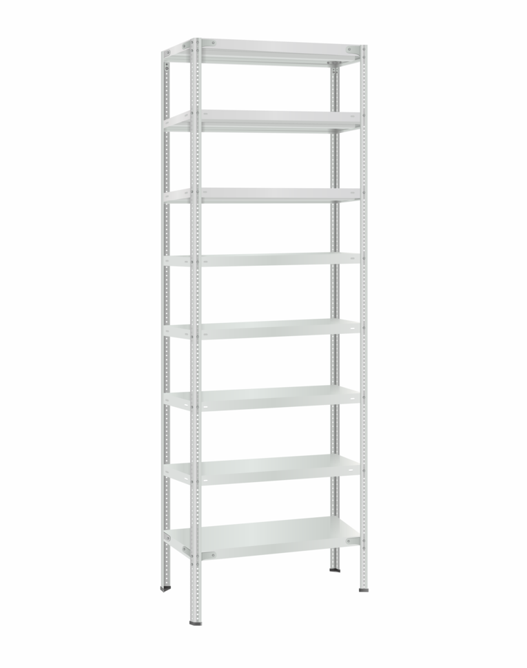 Полки МС Титан изготовлены из высокопрочной стали, покрыта полимерным порошковым покрытием светло серого цвета RAL 7035 типа шагрень